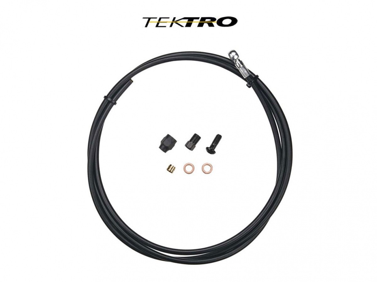 Brzdová hadička d.5,5 x l.2000 mm s banjo koncovkou, 1 ks oliva, 1 ks koncová vložka s tesnením, 1 ks prevlečná matica, 2 ks podložka a 1 ks prietoková skrutka pre TEKTRO Orion, Auriga Pro/Twin, Volans.