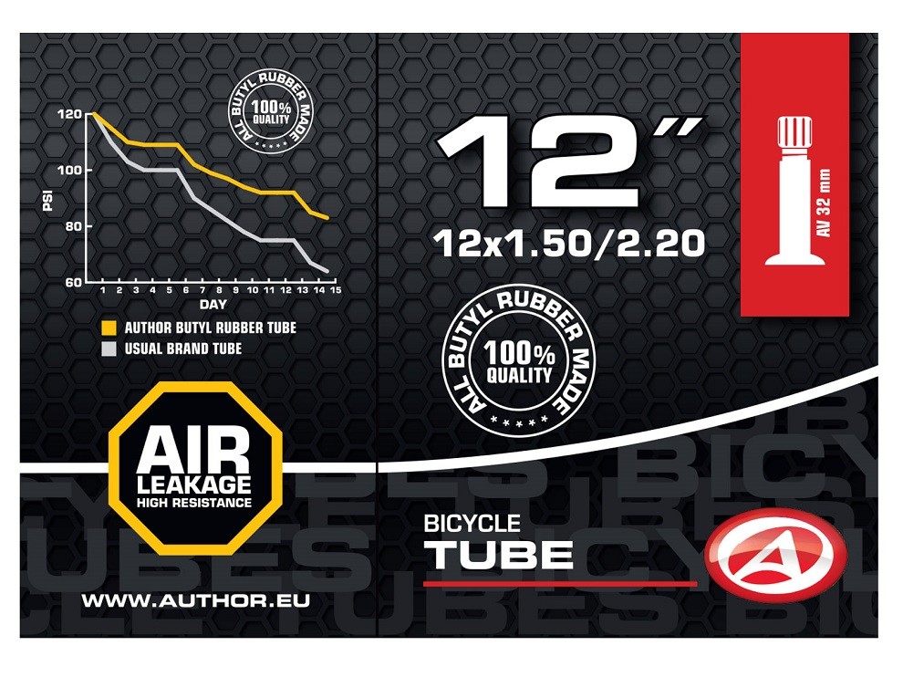 Duša AUTHOR 12 x 1,50 – 2,20 vyrobená zo 100% butylovej gumy s veľmi nízkou priepustnosťou pre plyny.