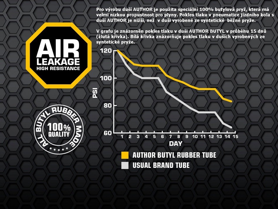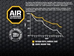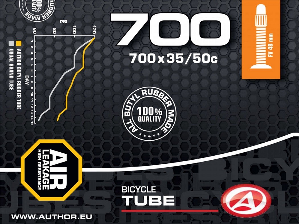 Duša AUTHOR 700×35/50C vyrobená zo 100% butylovej gumy s veľmi nízkou priepustnosťou pre plyny.